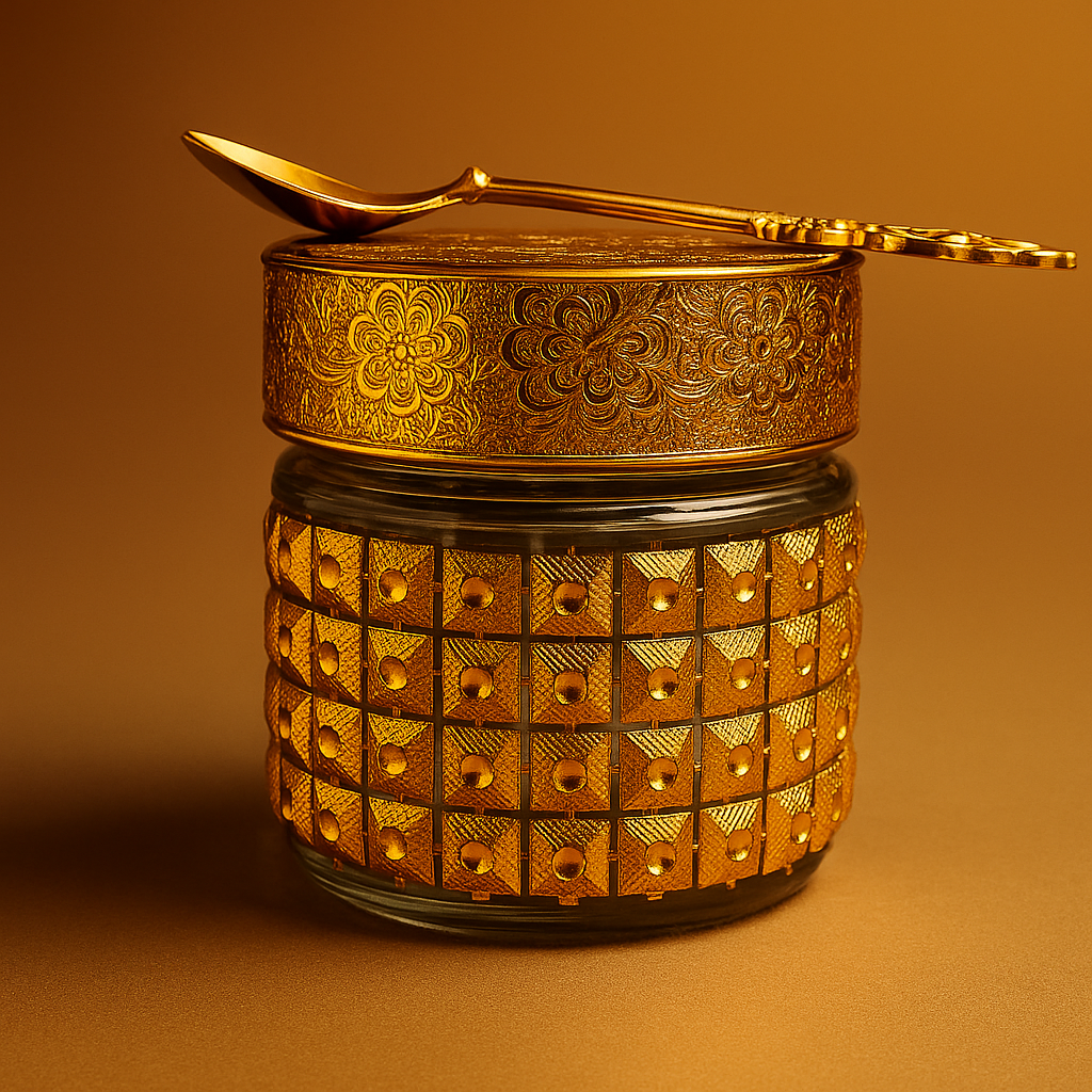 - Material/Design: Premium golden food-grade jar